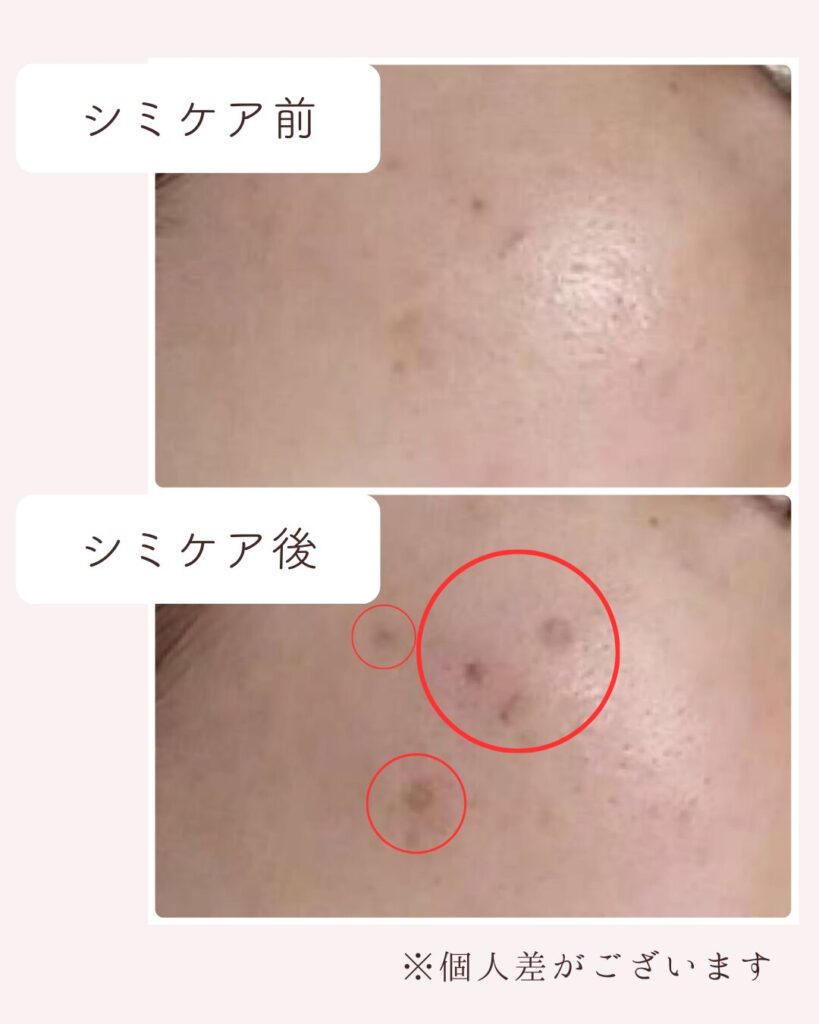 反応した隠れシミは当日は少し濃くなり、その後1週間ほどで薄くなります」