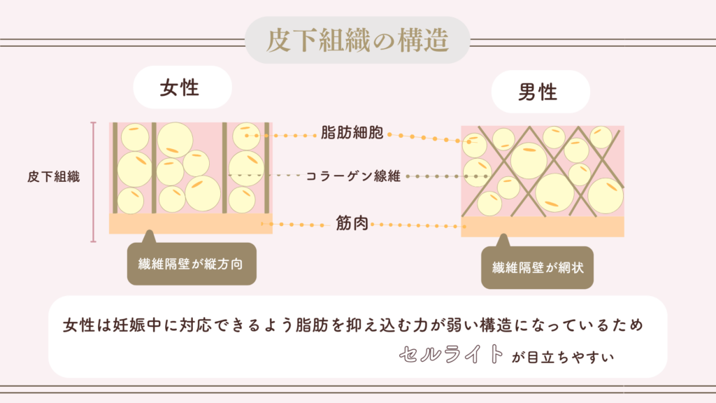 男女でホルモンバランスと皮下組織の構造の差があることが理由です。